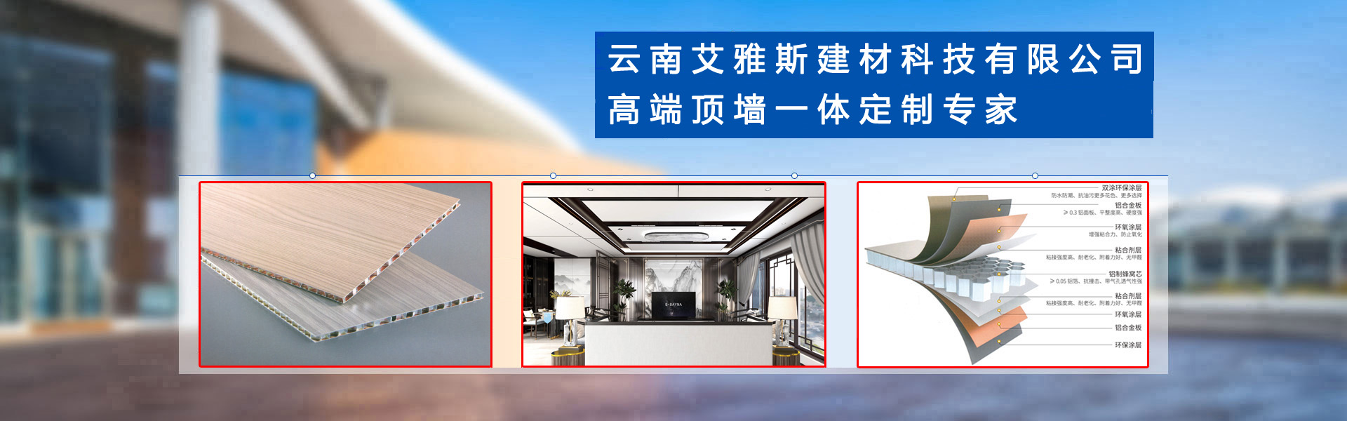 高端頂墻一體定制專家——云南艾雅斯建材科技有限公司,位于昆明經(jīng)開區(qū)小石壩社區(qū)白水塘上村36號,專注于鋁蜂窩大板,配套鋁型材,集成墻板,無主燈,照明系列的設(shè)計、生產(chǎn)、銷售、安裝于一體的高端頂墻定制專家,是一家具有多年生產(chǎn)研發(fā)及完整銷售管理經(jīng)驗的公司,艾雅斯鋁蜂窩板全新視覺觀感,高端大氣,風(fēng)格百變,隨心設(shè)計! 云南艾雅斯建材生產(chǎn)的鋁蜂窩板、鋁型材、集成墻板深受廣大消費者所喜愛,具有環(huán)保無醛,防水防潮,隔音隔熱,高強度,抗沖擊,不易變形,堅固牢靠等特點,廣泛應(yīng)用到各行各業(yè),成為全國各地的加工廠、批發(fā)商一站式的供應(yīng)商,備受好評。云南艾雅斯建材科技有限公司嚴格執(zhí)行售前、售中、售后,全方位的合作形式,我們堅持以產(chǎn)品質(zhì)量為中心,以客戶需求為理念,為廣大加工廠,批發(fā)商提供優(yōu)質(zhì)的產(chǎn)品與服務(wù)。了解更多